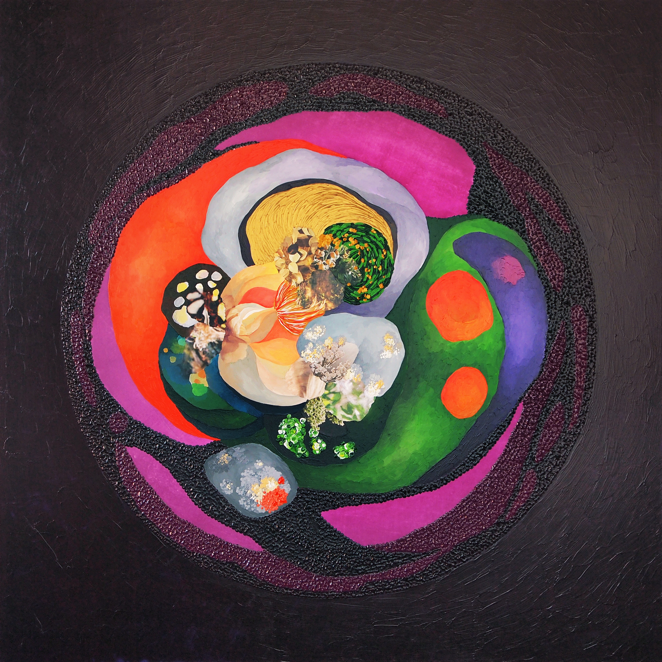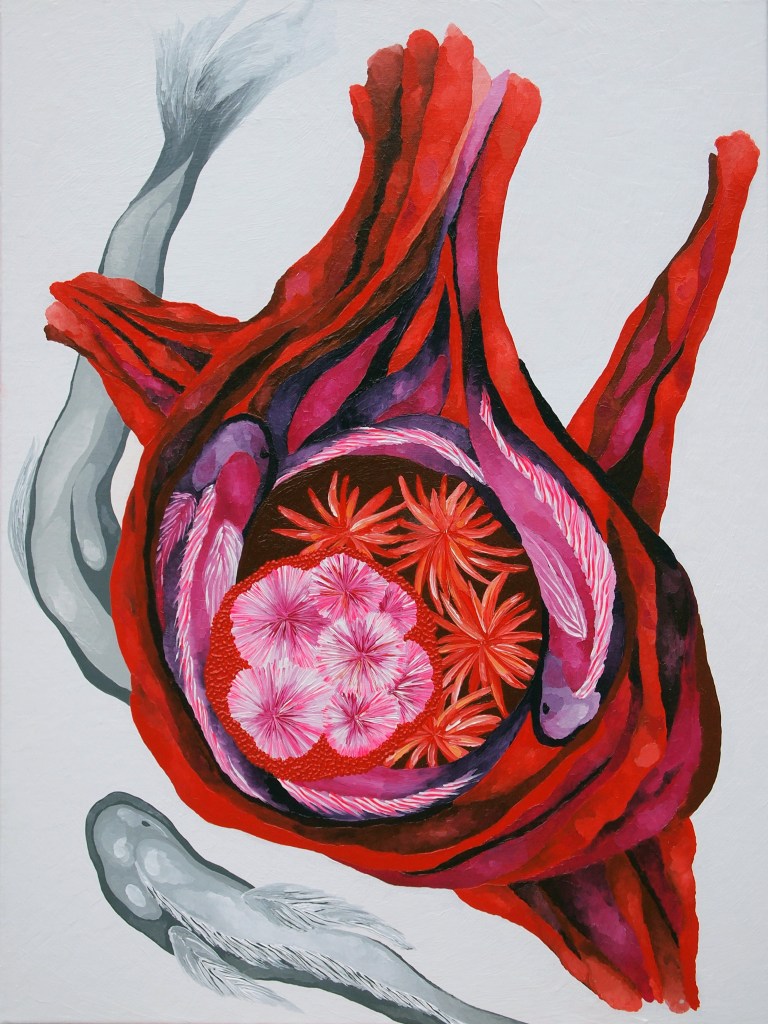ACRYLIC PAINTINGS (various techniques). The aim of these paintings is to depict uncommon landscapes that could sometimes be found on the thin line separating the strange and the familiar. These are subjective landscapes depicted by a language that sails between the figurative and the abstract, in a process where internal and external matter are fused. Through these representations I question the relationship between the body and the «landscape», and thus the creative process that allows their interrelation and encounter. It is a reflection about the limits of the perception. Remembering Merleau-Ponty, we only experiment what our body state allow us and we only conceptualise through systems based on our body experience.