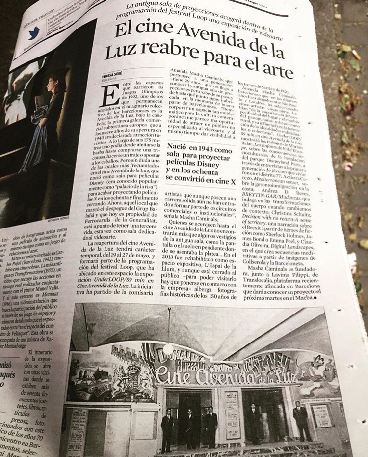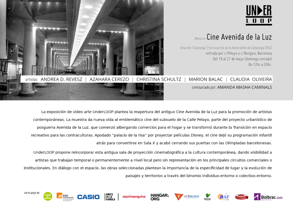 La oportunidad llegó de la mano de Amanda Masha Caminals, quien comisarió la exposición UNDERLOOP en el espacio del antiguo CINE AVENIDA DE LA LUZ.