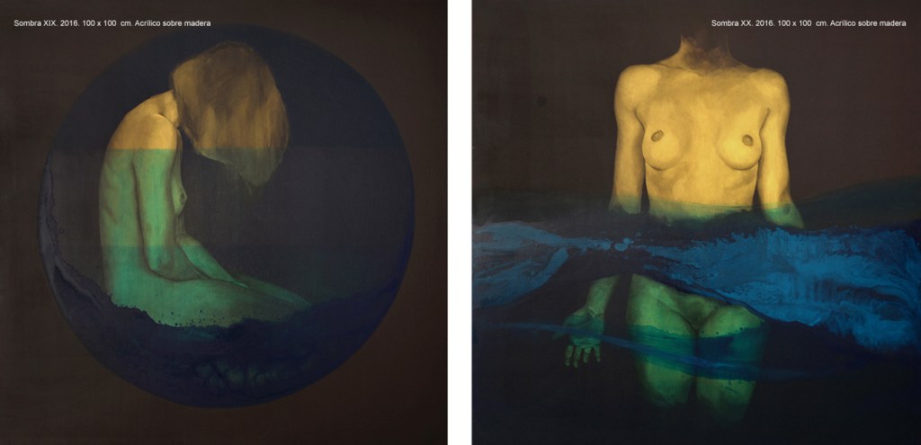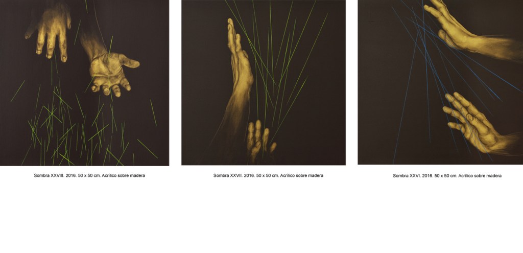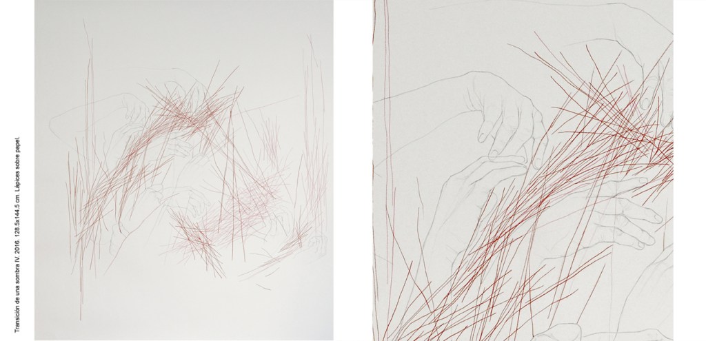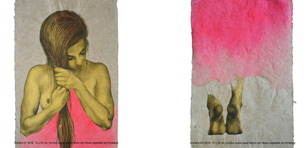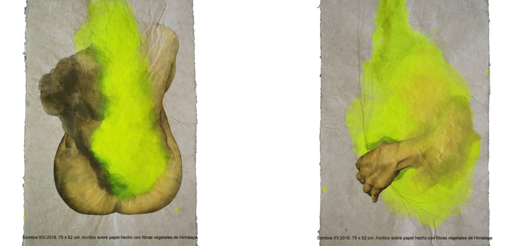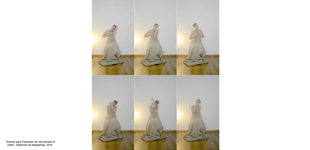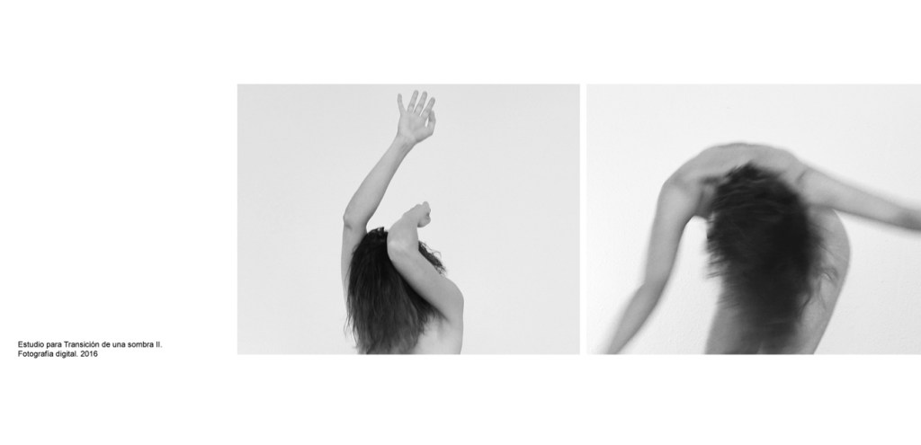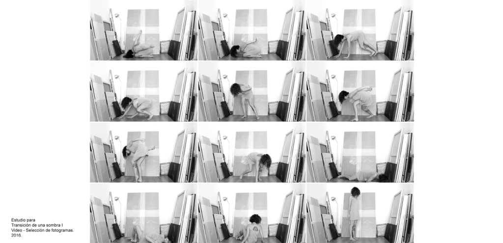 En el 2016 Vasijas dio lugar a SOMBRAS, proyecto durante el cual continué elaborando la mirada sobre el tema de la corporeidad y su representación bajo una perspectiva más atenta al lenguaje corporal, a la exploración y despliegue de la experiencia corpórea sobre la que se desarrolla el proceso creativo. En el proceso el cuerpo es el mediador, el objeto observado y el sujeto observador. En una primera fase lo descubro y aprehendo, generando producciones espontáneas en las que exploro diferentes estados originados entre el movimiento y la quietud busco en él un lugar de anclaje con lo oculto desde donde observar un esqueleto hasta entonces invisible de la imagen corporal. Recojo esta experiencia con video grabaciones que utilizo como estudio previo para las siguientes fases del proceso en las que medio con la edición de video, series fotográficas, pintura y dibujos sobre papel.