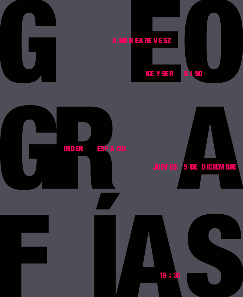 Proyecto articulado en el espacio de la exposición con la obra del artista Keyser Siso. Presentado como una muestra de pintura, dibujo, ilustración y audiovisuales compuesta por los artistas Andrea Revesz (Barcelona, 1983) y Keyser Siso (Puerto Ordaz, 1982), en la que ambos reflexionan en planos diferentes sobre nuestro lugar en el mundo y nuestra manera de relacionarnos con éste a través de la corporeidad y del culto