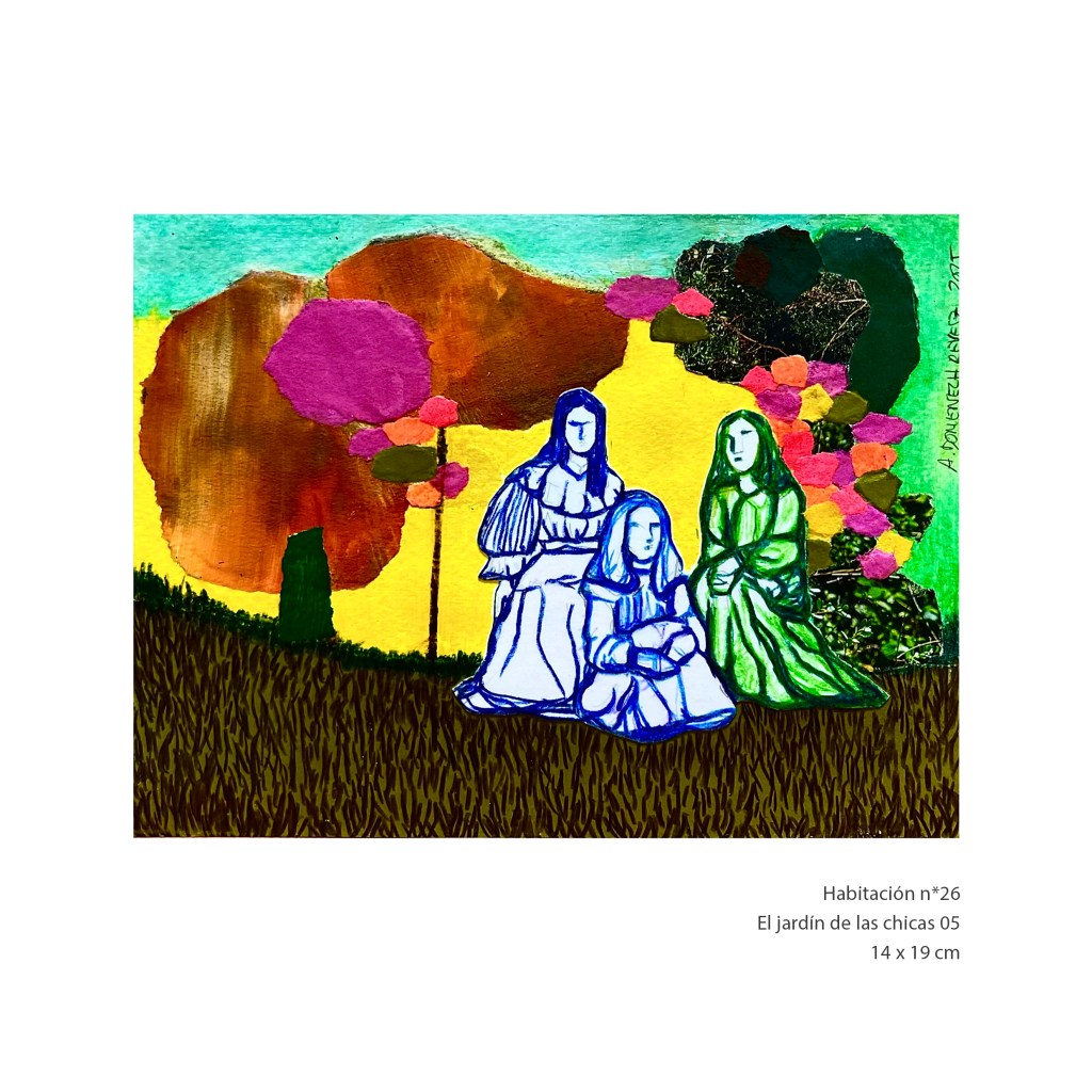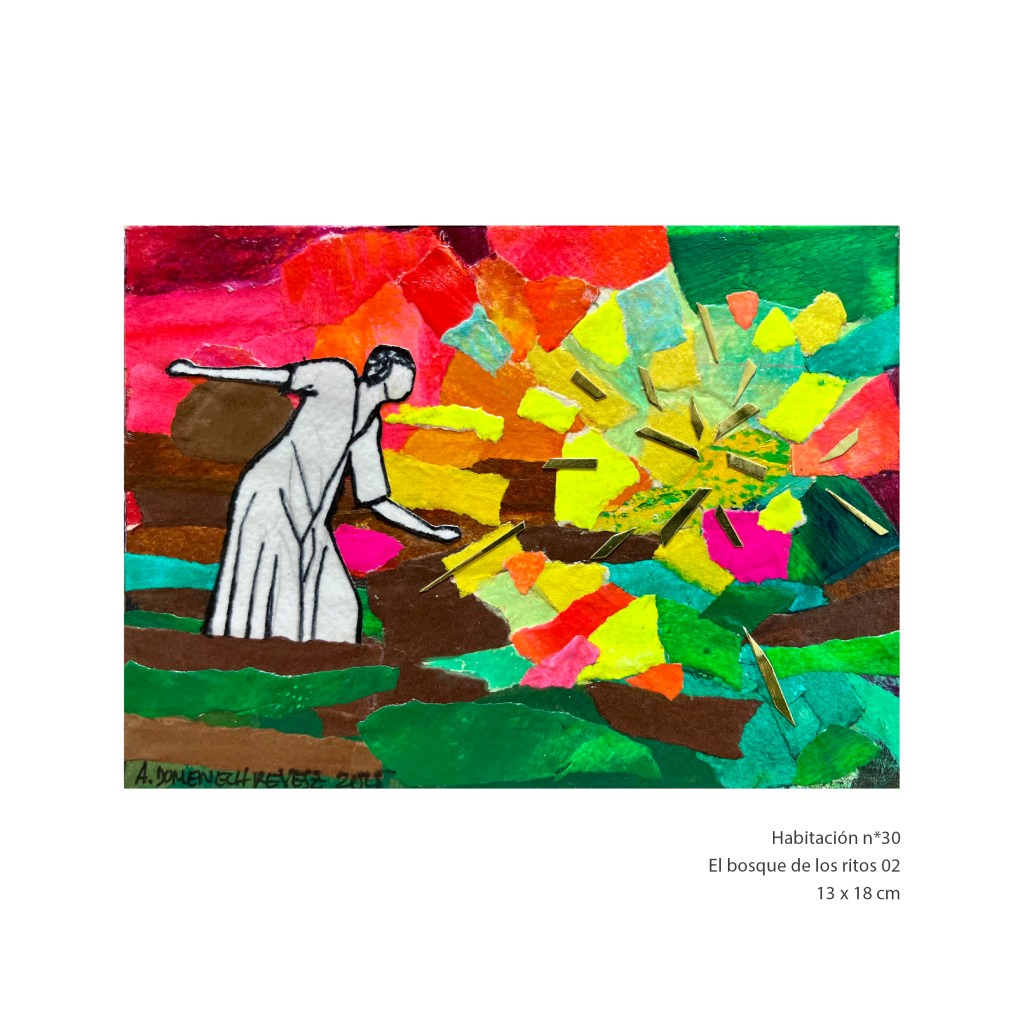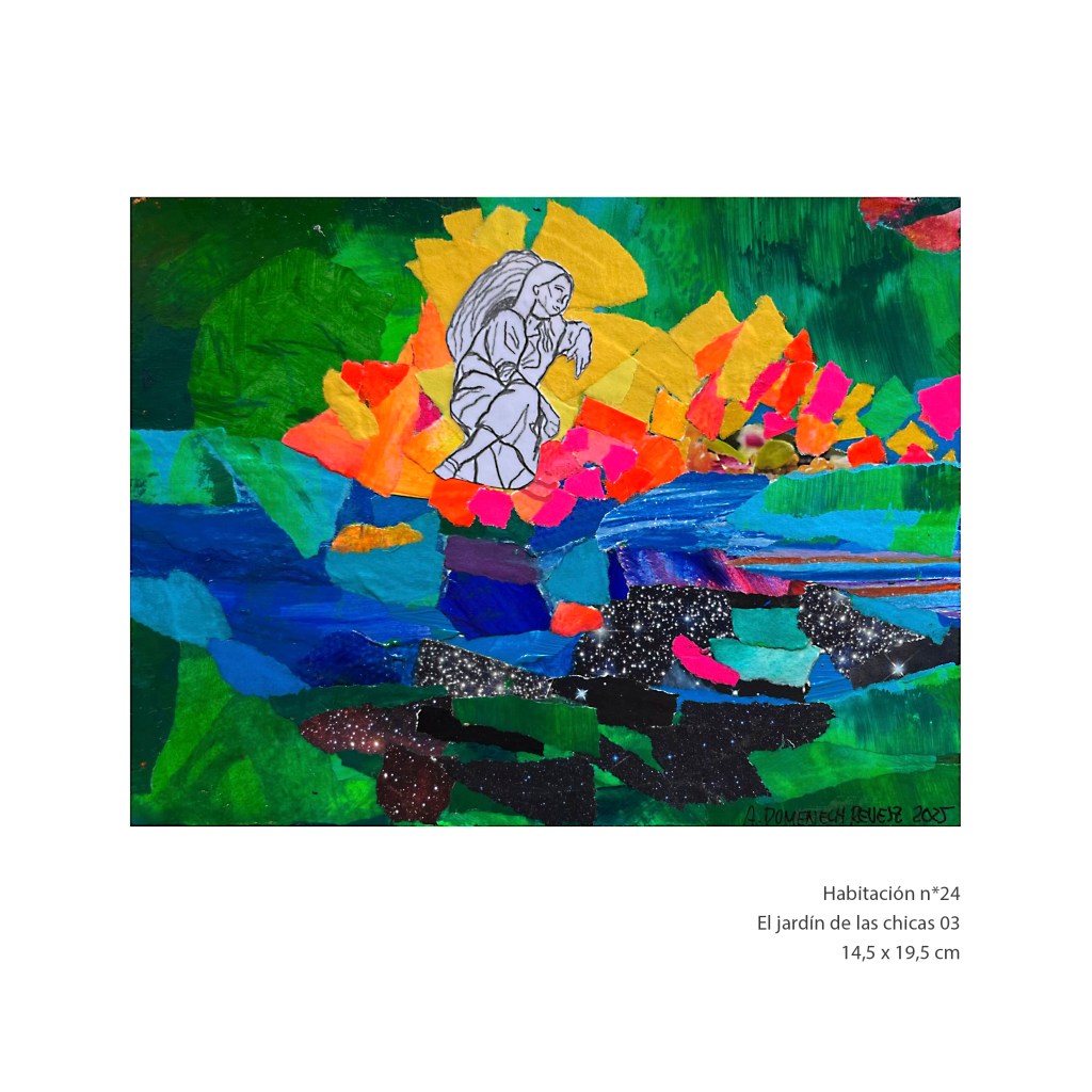 LA HABITACIÓN AMBULANTE investiga esta relación de ideas a través de diferentes modalidades de creación. Difuminando los límites que aparentemente separan el cuerpo del lugar habitado, las HABITACIONES son producciones plásticas que realizan esta exploración a través de la técnica del COLLAGE.